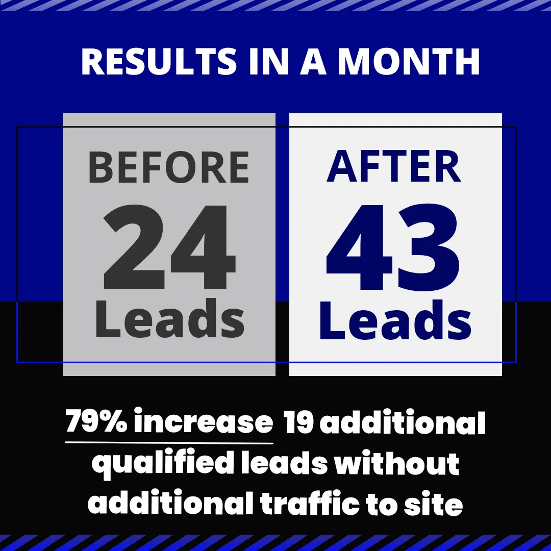You don't need to make any major changes to your website AND you don't even have to change marketing companies (unless you want to). We work with your existing providers and just plug and play our tool into your website to start generating hyper qualified leads 24/7 month after month.